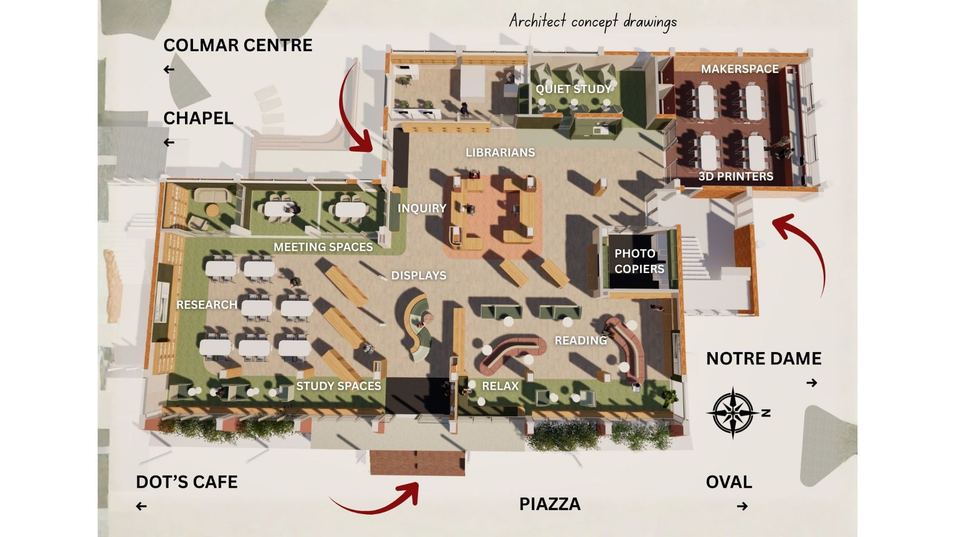 Centrally located within the College, the Learning Resource Centre will provide a diverse range of learning environments, from quiet spaces for focused study and research, to flexible areas for collaboration, reading and independent learning. Positioned alongside the piazza, the centre will also foster social connection, supporting student engagement and wellbeing beyond the classroom.Designed with flexibility at its core, the space will feature adaptable seating and open shelving to create a light, inviting atmosphere. Enhanced access to technology, including a dedicated makerspace, will encourage innovation, problem-solving and hands-on learning experiences.This final stage of the Masterplan represents the culmination of a vision first shaped in 2018, a vision grounded in the belief that thoughtfully designed spaces inspire learning, enhance teaching and nurture wellbeing. The new Learning Resource Centre will stand as a vibrant symbol of this commitment, enriching the experience of every student and staff member for years to come.